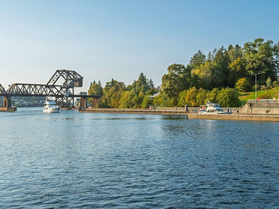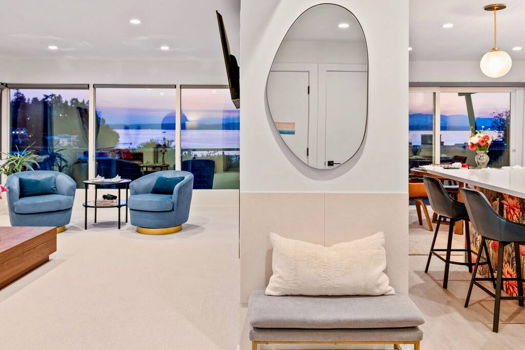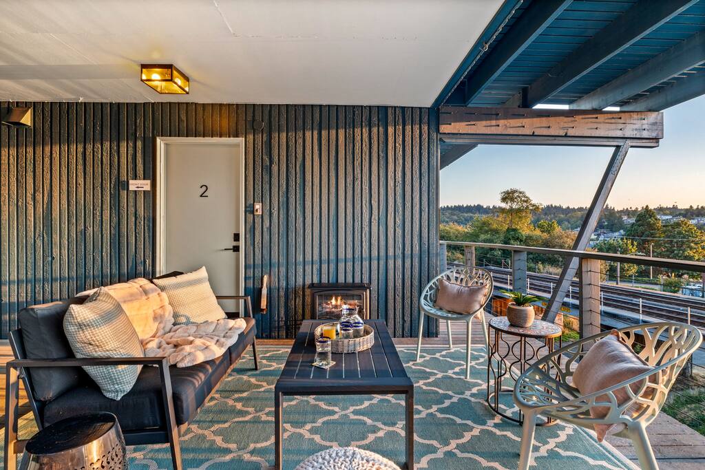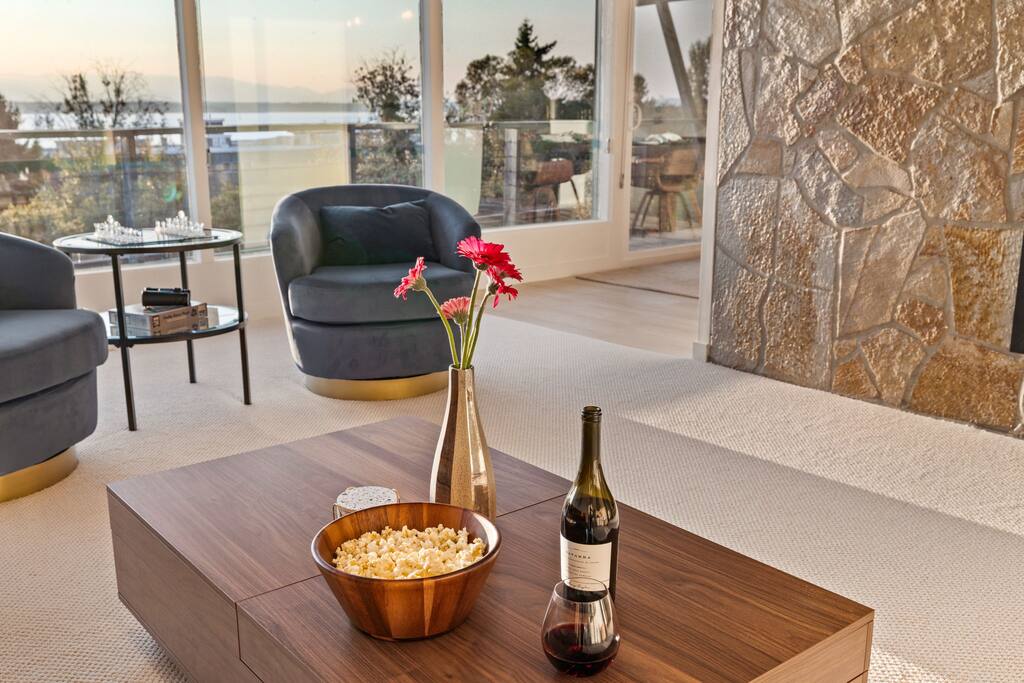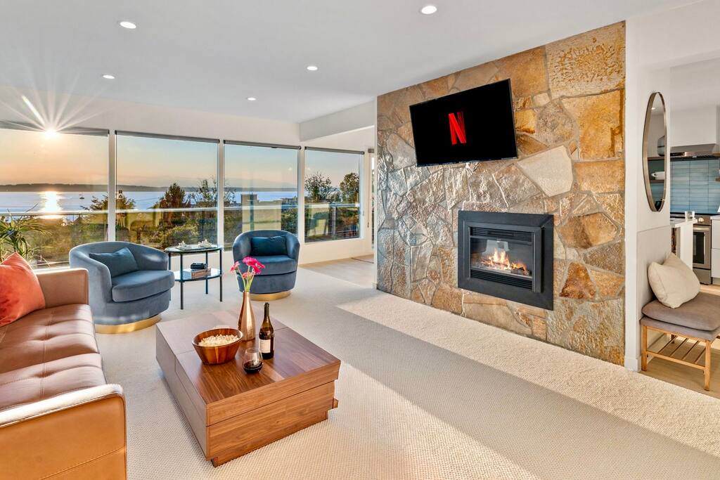 Modern Ballard condo with stunning Puget Sound and Olympic Mountain views. 2 bedrooms, dedicated office and fully equipped kitchen make it ideal for work retreats or a weekend getaway. Walk to Golden Gardens Beach or enjoy dinner at Ray’s Boathouse across the street. A unique setting along the railroad tracks with breathtaking views make for unforgettable moments for all! Gather with friends and family every night by the fireplace or patio to watch the epic sunset! Just mins to downtown Seattle.