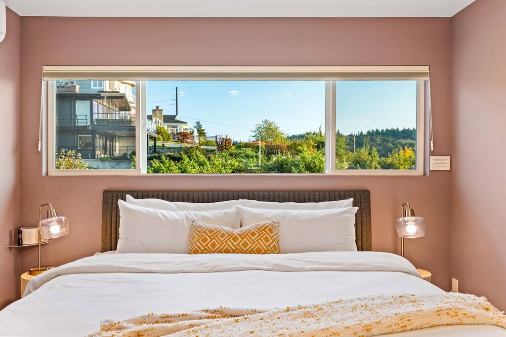 🛏️ 2 Bedrooms + Office/den room, 2 Walk-in Shower Bathrooms – Unwind in two well-appointed bedrooms, each featuring plush bedding and plenty of natural light. Primary bedroom has a King mattress with a private ensuite bath room. The guest bedroom is a Queen mattress, located across the hall from the second bathroom. Office/ 3rd den room - comes with a desk and video light for the optimal work-from-home set up! There is also a pack and play in the entry coat closet for guests to use as well. The spacious living area provides a comfortable space to relax with a Smart TV, w/ Netlfix + Roku and plenty of seating for everyone. Primary bedroom also has it's own bathroom for ultimate comfort and convenience. 🍽️ Fully Equipped Kitchen – Whether you're preparing a quick breakfast before a day of adventure or cooking a special dinner, our kitchen has everything you need – including a full set of Caraway ceramic cookware and brand-new sharp knives, perfect for any chef. 🔥 Luxury Amenities – Enjoy an electric fireplace that adds warmth and ambiance, and experience full lighting control throughout the condo. The bathrooms are designed for relaxation with LED vanities and heated wood floors, adding a spa-like touch to your stay. 🌟 Brand New A/C and Heating Mini Split – Stay cool and comfortable during those warmer Seattle days with our brand-new A/C system. ☕ Comfort and Convenience – Enjoy your morning coffee on the balcony while taking in the beautiful one-of-a-kind view of the Puget Sound and mountains. Trains pass by, which provide an amazing view for fans of trains, and we provide sound machines and new windows to ensure restful nights. Mini-split Air conditioning, WiFi, and laundry facilities in-unit are here to make your stay seamless and enjoyable. 🌞 Fully Renovated with Luxury Finishes – Every detail has been carefully chosen to provide a high-end experience, from sleek finishes to thoughtful touches throughout. Including dimmers on the light fixtures in every room for optimal ambience! 🌟 Location, Location, Location – Located just steps away from the best of Ballard, you’ll be near amazing restaurants, breweries, boutiques, and the famous Ballard Locks. We are a 5 minute walk from the historic ocean front Rays Boathouse restaurant, 15 minute walk to Ballard Locks and 15 minute walk to Shilshole Bay Marina. The marina is widely regarded as the premier boating and sailing center of the Northwest. Property is 100’ from the famous Burke-Gilman pedestrian path. Unit looks due west for year round sunsets, when cloud cover allows. Take a quick Uber down to the infamous Golden Gardens Beach Park for some beachside relaxation, or explore nearby Fremont and downtown Seattle for even more popular attractions like the Space Needle, Climate Pledge Arena and Pike Place Market. Parking 🚙 : - Our home is located at the dead end street on 37th Ave NW, there are free parking spots on the street by the rock retaining wall and hedges. Please do not park in the carport or in the two spaces at the dead end that block the carport. (The very far left space at the dead end is fine if it is open). Additional Parking Below: This is a dedicated parking space located below the building off of NW 61st Street, however, please be careful the driveway is a little steep, it can be backed into for ease of getting in and out. Getting to the unit: - Walk through the right side of the carport, down 1 flight of stairs. - Unit #2 front entry door is at the bottom of the stairs with a keypad above the door handle. From lower lot: Walk up the stairs to the second floor, walk past the patio furniture, it is the second door on your right. ✨ Why You’ll Love Staying Here: - Perfectly situated for exploring Seattle’s neighborhoods. - Quiet and friendly surroundings for a restful stay. - Easy access to top attractions, dining, and nightlife. - Family-friendly amenities and atmosphere. - Gorgeous Puget Sound and mountain views, and a unique train-watching experience, the kids love! - Epic PNW sunsets every night - 15-20 minutes to downtown Seattle - Make your trip to Seattle special with a stay in our charming Ballard condo! We look forward to hosting you :)
