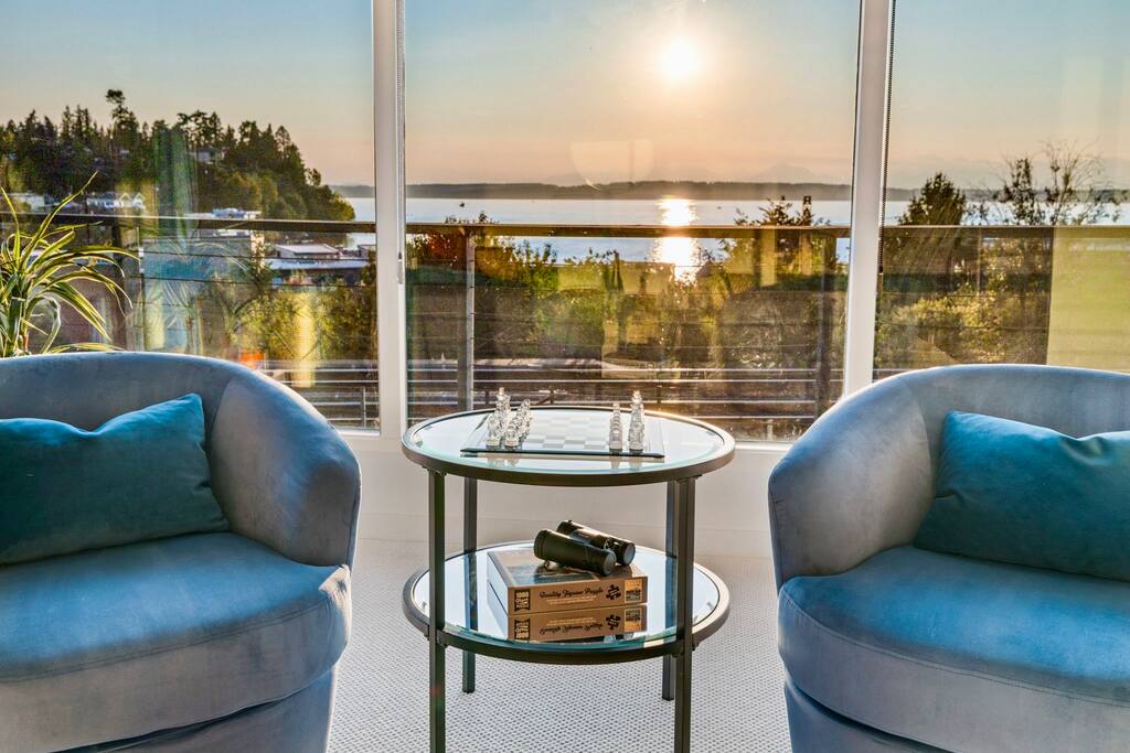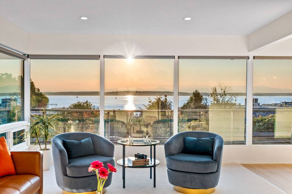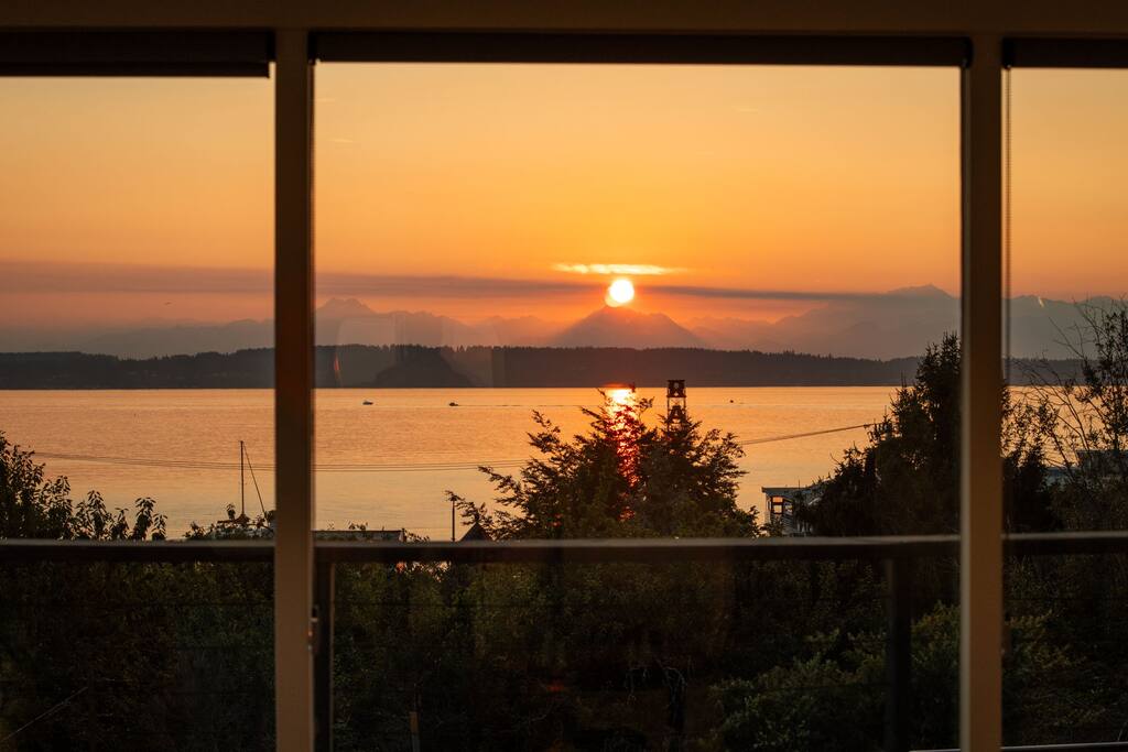 The home sits on a hill above the railroad overlooking the breathtaking views of the Olympic mountains and the Puget Sound, and epic sunsets every night, a unique experience with the comfort and convenience of being in the heart of Ballard neighborhood.