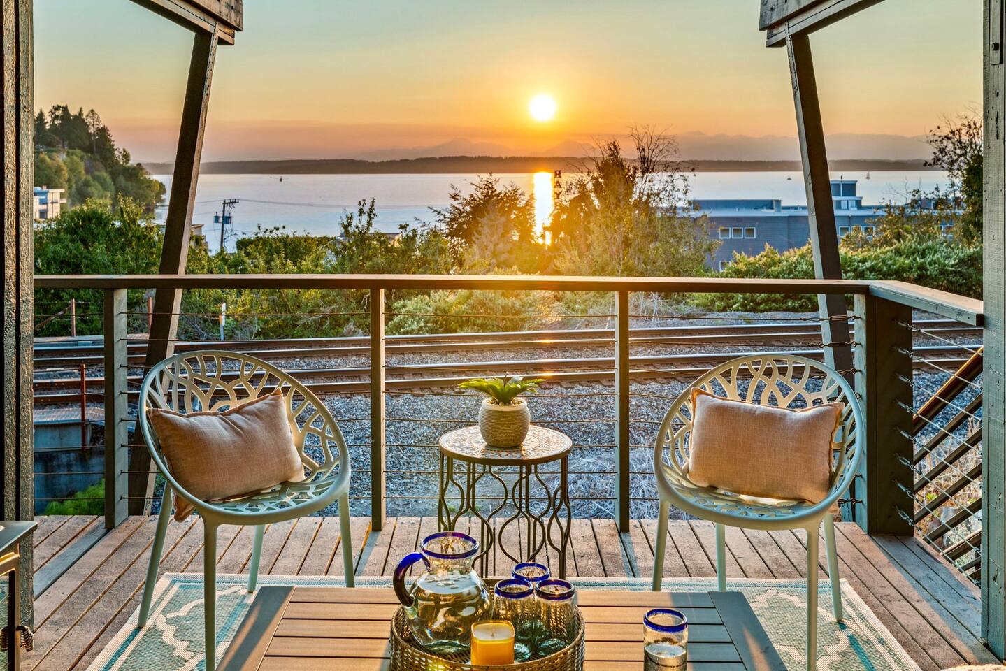 The home sits on a hill above the railroad overlooking the breathtaking views of the Olympic mountains and the Puget Sound, and epic sunsets every night, a unique experience with the comfort and convenience of being in the heart of Ballard neighborhood.