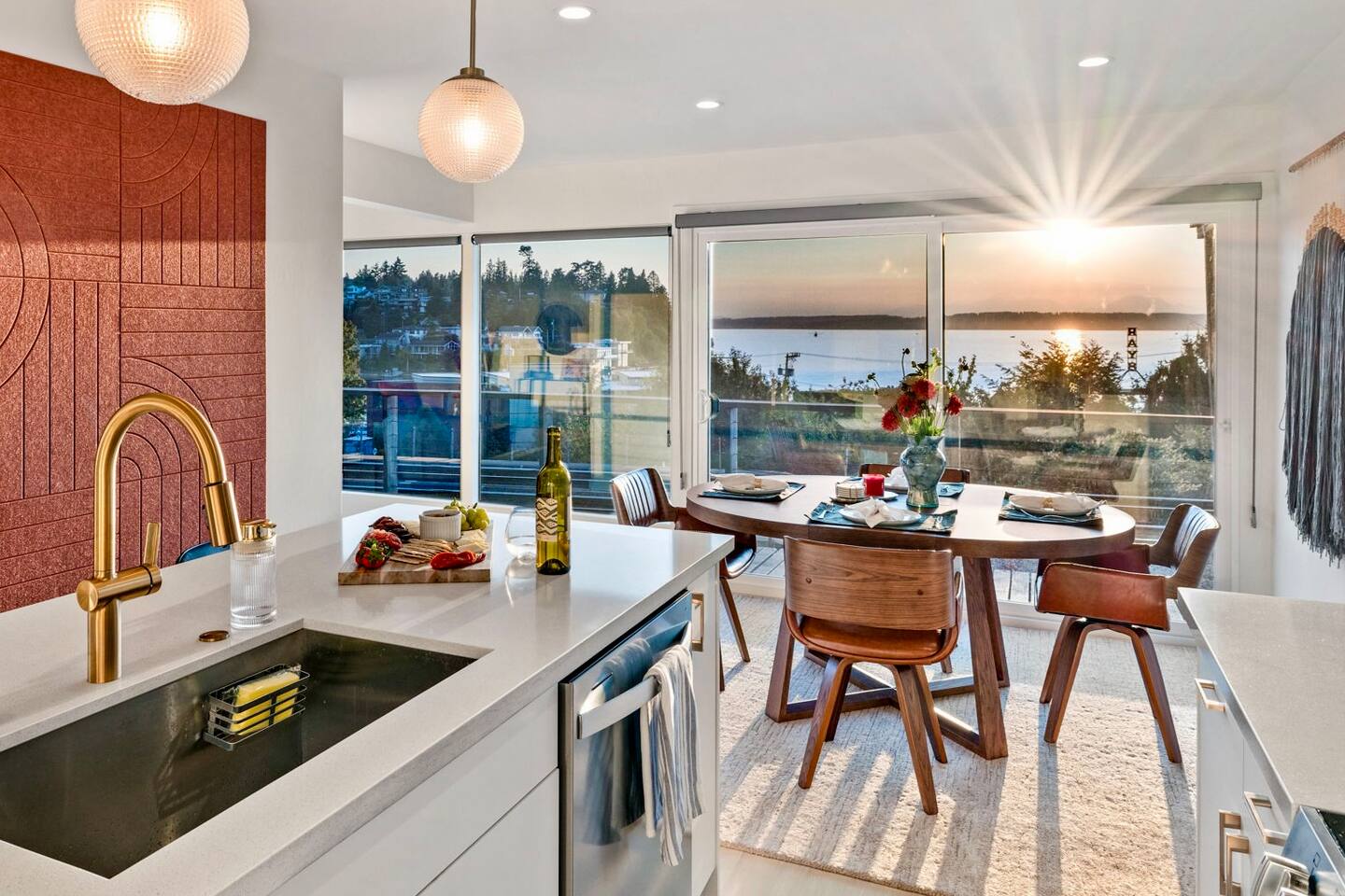 Modern Ballard condo with stunning Puget Sound and Olympic Mountain views. 2 bedrooms, dedicated office and fully equipped kitchen make it ideal for work retreats or a weekend getaway. Walk to Golden Gardens Beach or enjoy dinner at Ray’s Boathouse across the street. A unique setting along the railroad tracks with breathtaking views make for unforgettable moments for all! Gather with friends and family every night by the fireplace or patio to watch the epic sunset! Just mins to downtown Seattle.